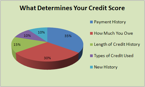 As you can see from the FICO Score pie chart above, the largest factor affecting your credit score is your payment history. This includes your track record for making regular and timely payments on all your credit cards, retail accounts, installment loans, finance company accounts, student loans, mortgages, etc.